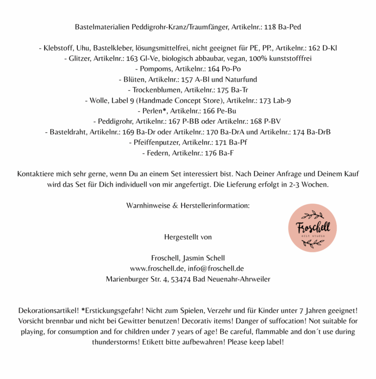 Mit einer großen Portion Freude, mit Liebe zum Detail und mit Sorgfalt von mir handgefertigt mit natürlichen Materialien. Es können Abweichungen vom gezeigten Bild auftreten.